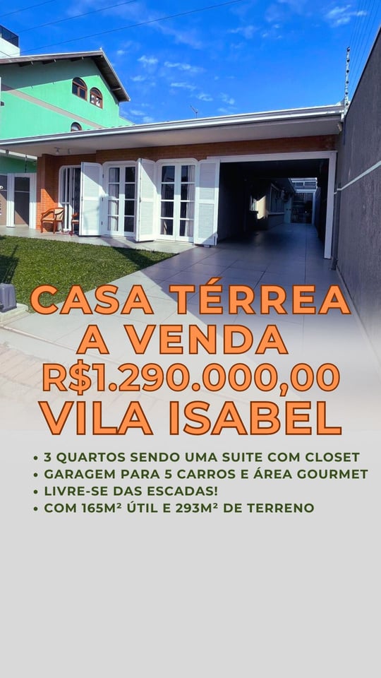 casa 175 m², 3 quartos sendo uma suíte com closet, 5 vagas de garagem.